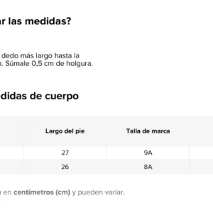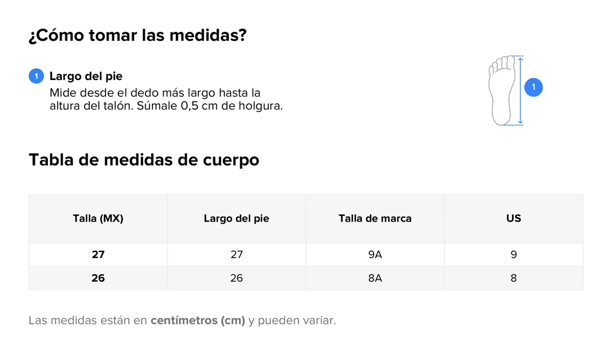 | Talla | 25.5, 26 MX, 28, 28.5 MX |
