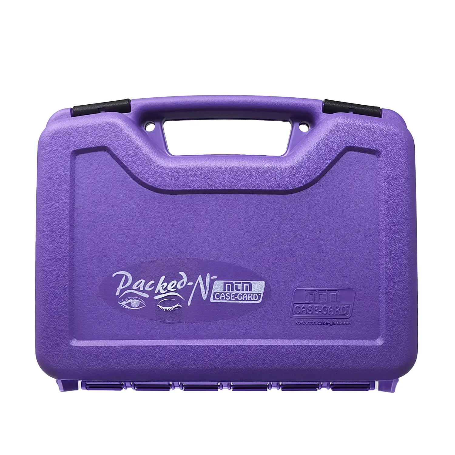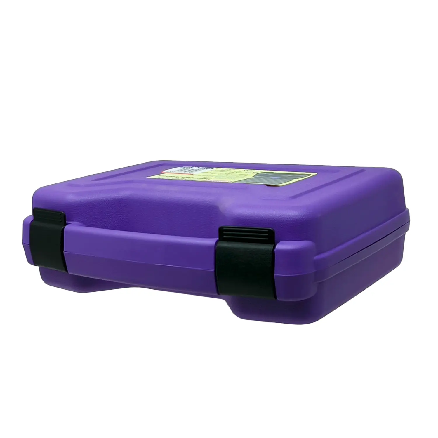 El estuche presenta un acabado en un vibrante color morado que no solo es visualmente atractivo, sino que también resalta en cualquier entorno. La superficie exterior está fabricada con un material resistente a la abrasión, diseñado para soportar condiciones adversas, asegurando que tu estuche no solo luzca bien, sino que también sea duradero.