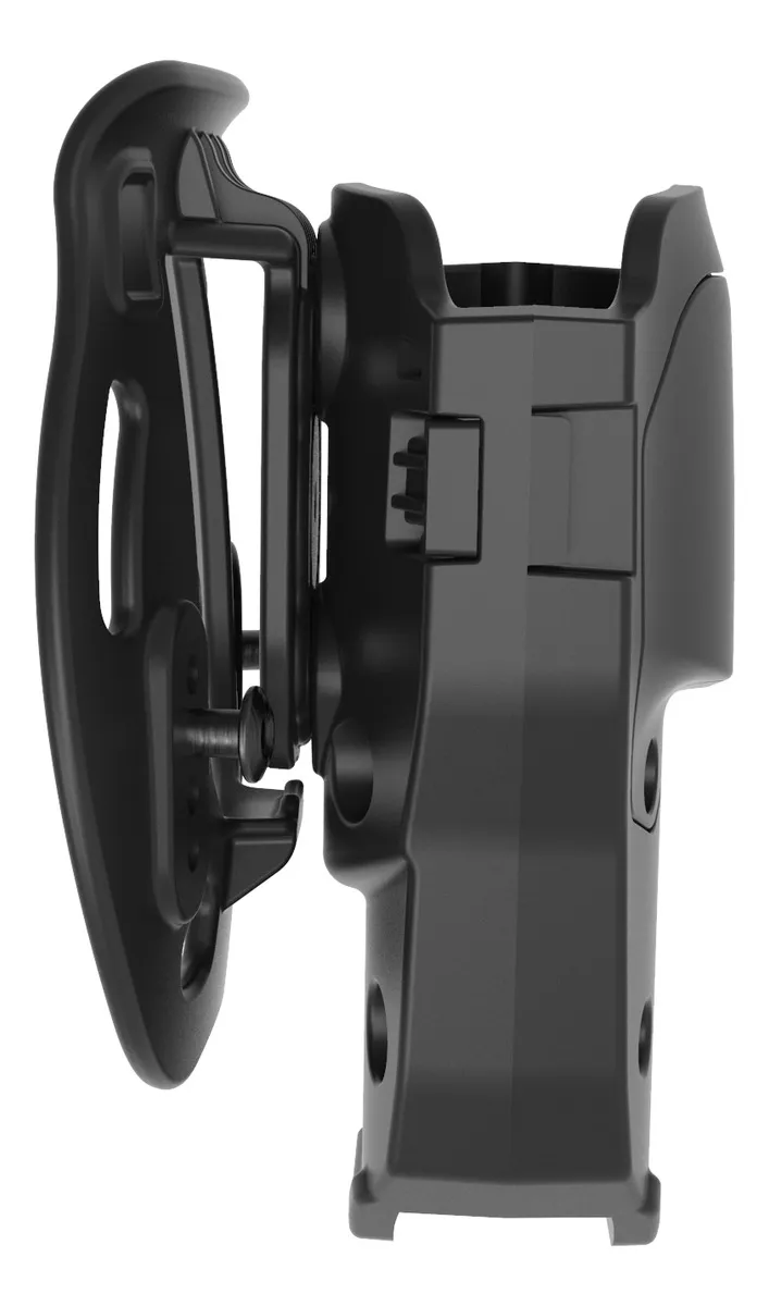 Fabricada en polímero de alta densidad, ofrece gran durabilidad, resistencia a impactos y tolerancia a condiciones exigentes. Su diseño ergonómico permite enfundar y desenfundar con suavidad, brindando confianza durante el uso.