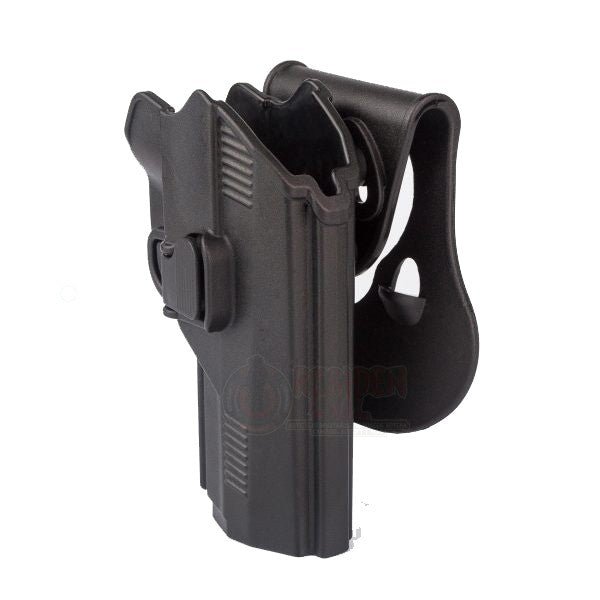Funda táctica con dos niveles de retención. Su diseño brinda agilidad y velocidad en su funcionamiento.