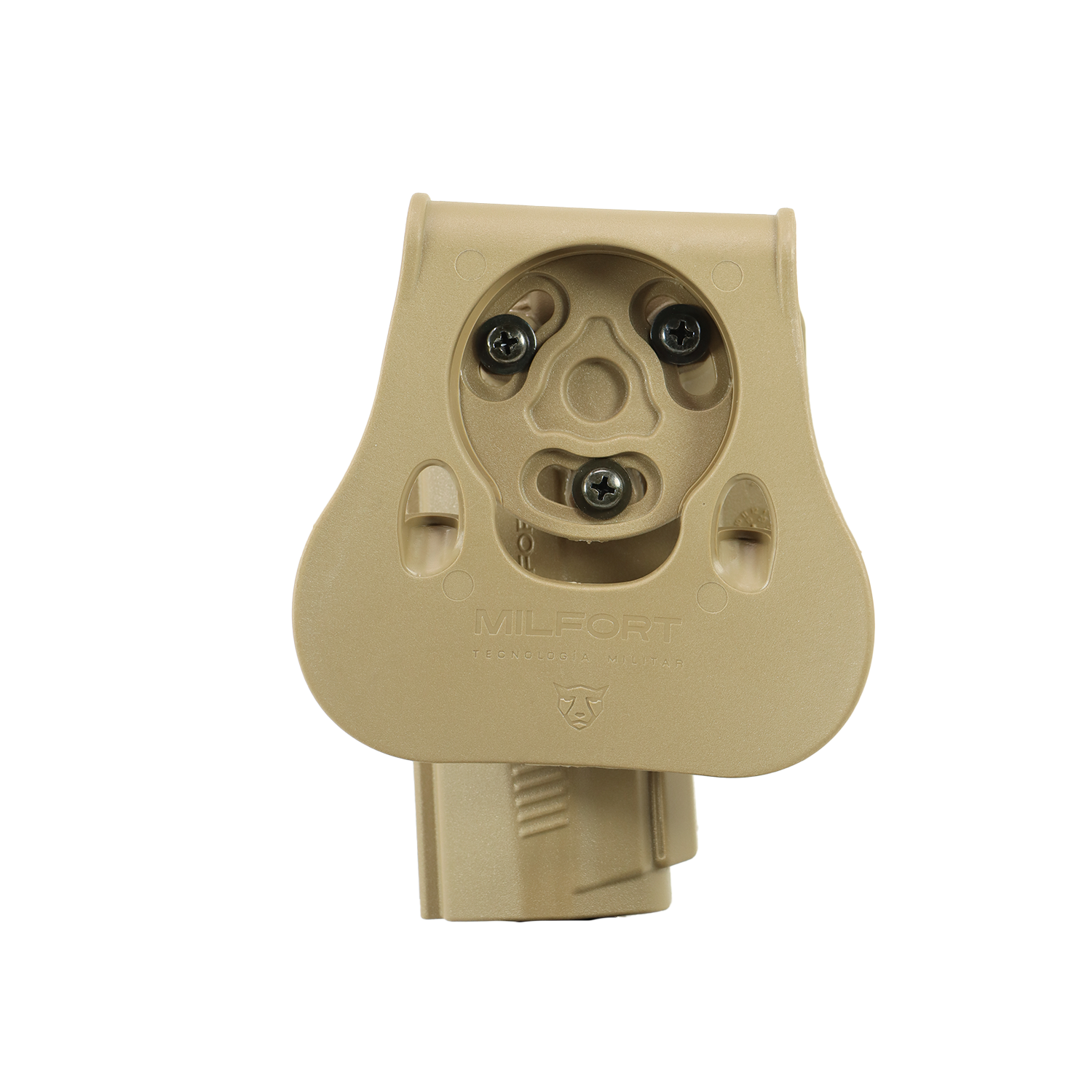 Diseñado para ser usado en cinturones multipropósito, cintos y pantalones, fabricado en material flexible, confortable y ergonómico a la cintura del usuario. Compatible con todas las fundas en polímero MILFORT.