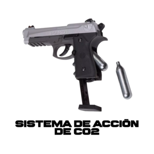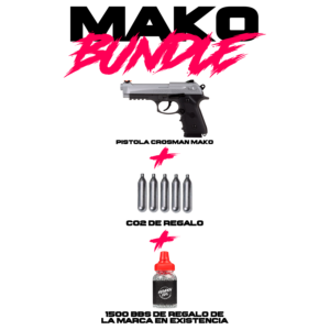 Alimentado por un solo cartucho de CO2 de 12 gramos, esta pistola de aire tipo Beretta presenta una revista número 20 de BB que lanza su carga útil de BB a velocidades de hasta 425 fps. Además del realismo del fuego semiautomático, se encuentra la acción de retroceso realista de la diapositiva de metal completo. Las miras fijas de fibra óptica de Mako aseguran una visión rápida de los objetivos. Como una ventaja adicional, el riel accesorio Picatinny / Weaver incorporado le da la opción de montar una mira láser o linterna para mayor precisión táctica. Si quieres una acción semiautomática asequible, ¡sumérgete en el Crosman Mako!