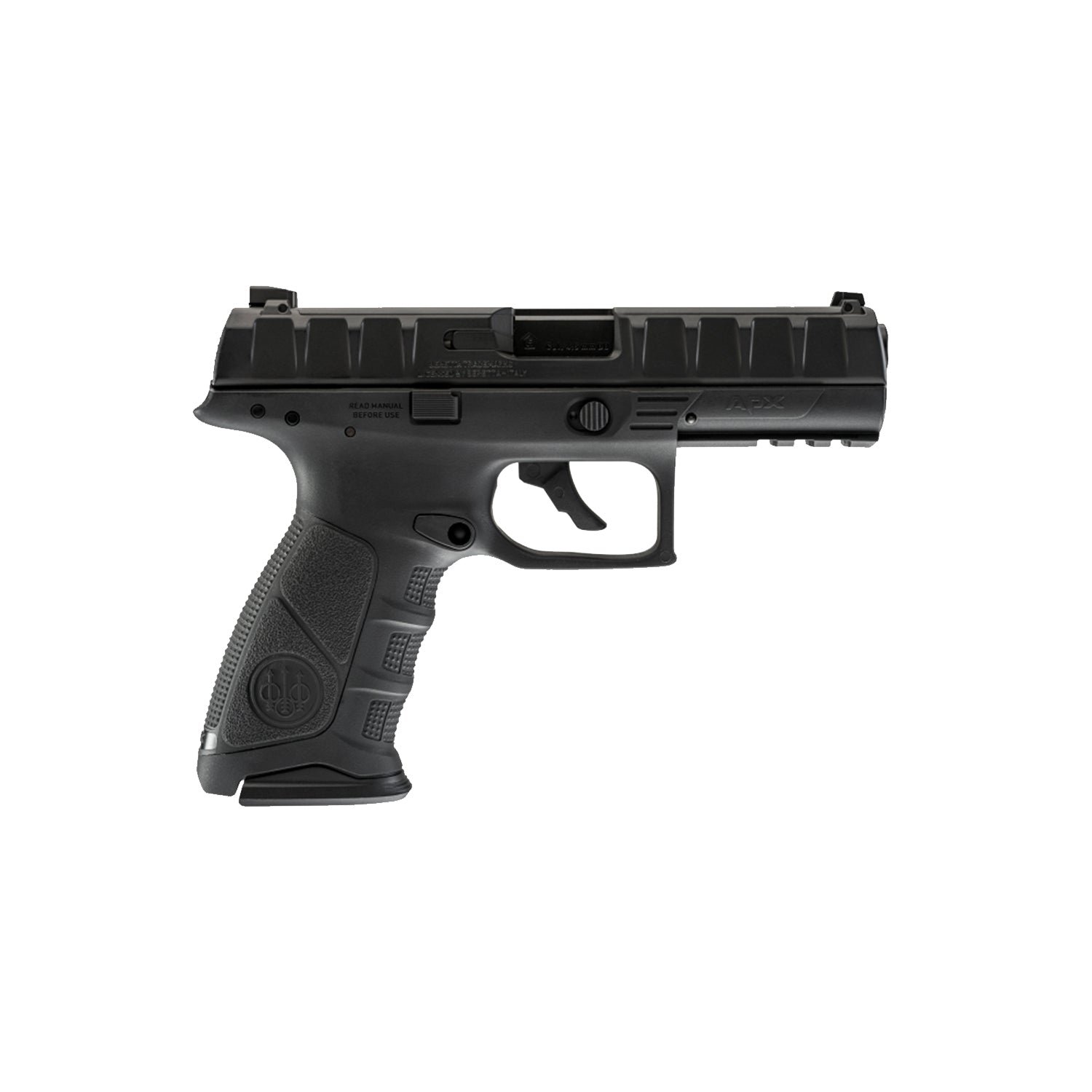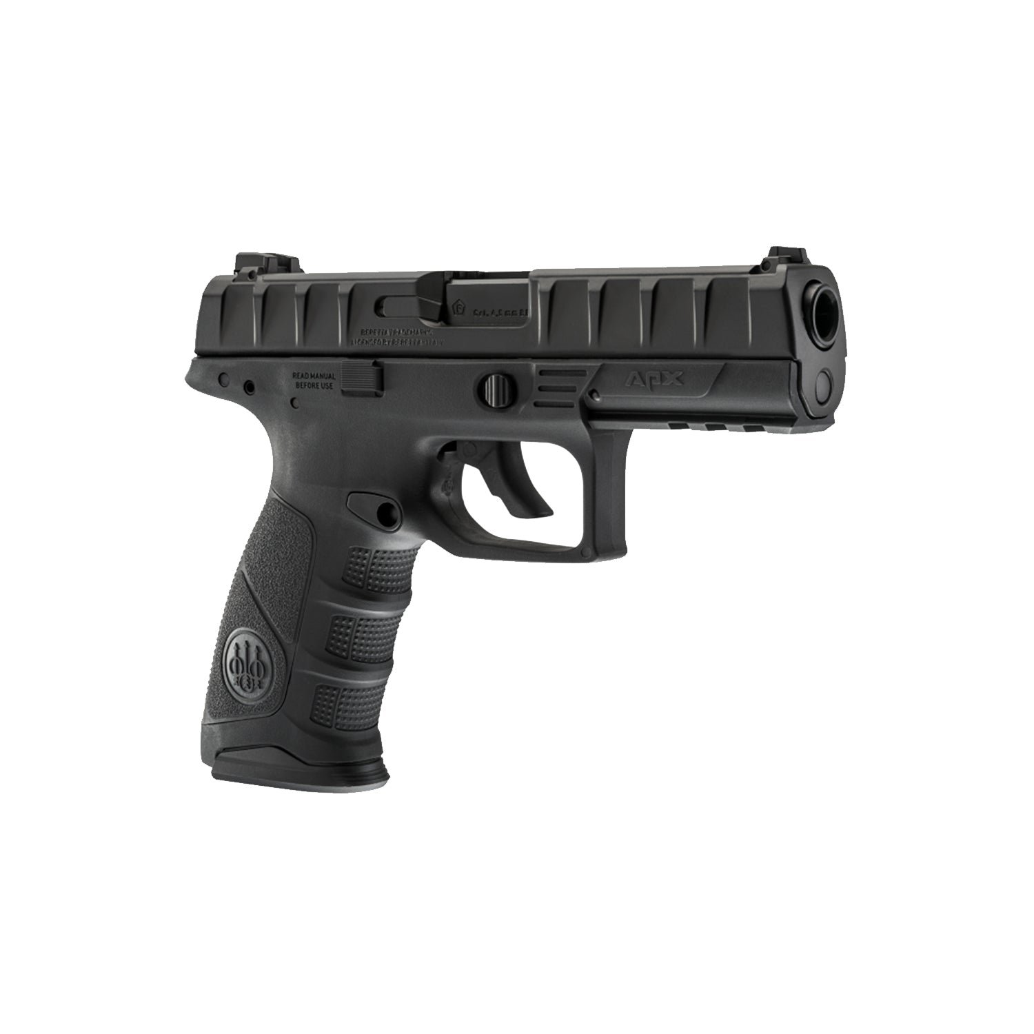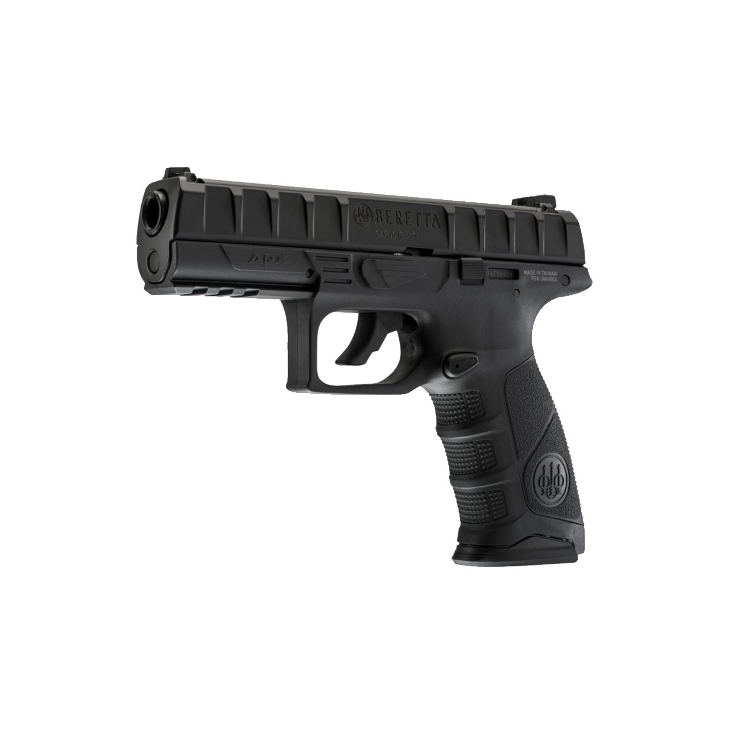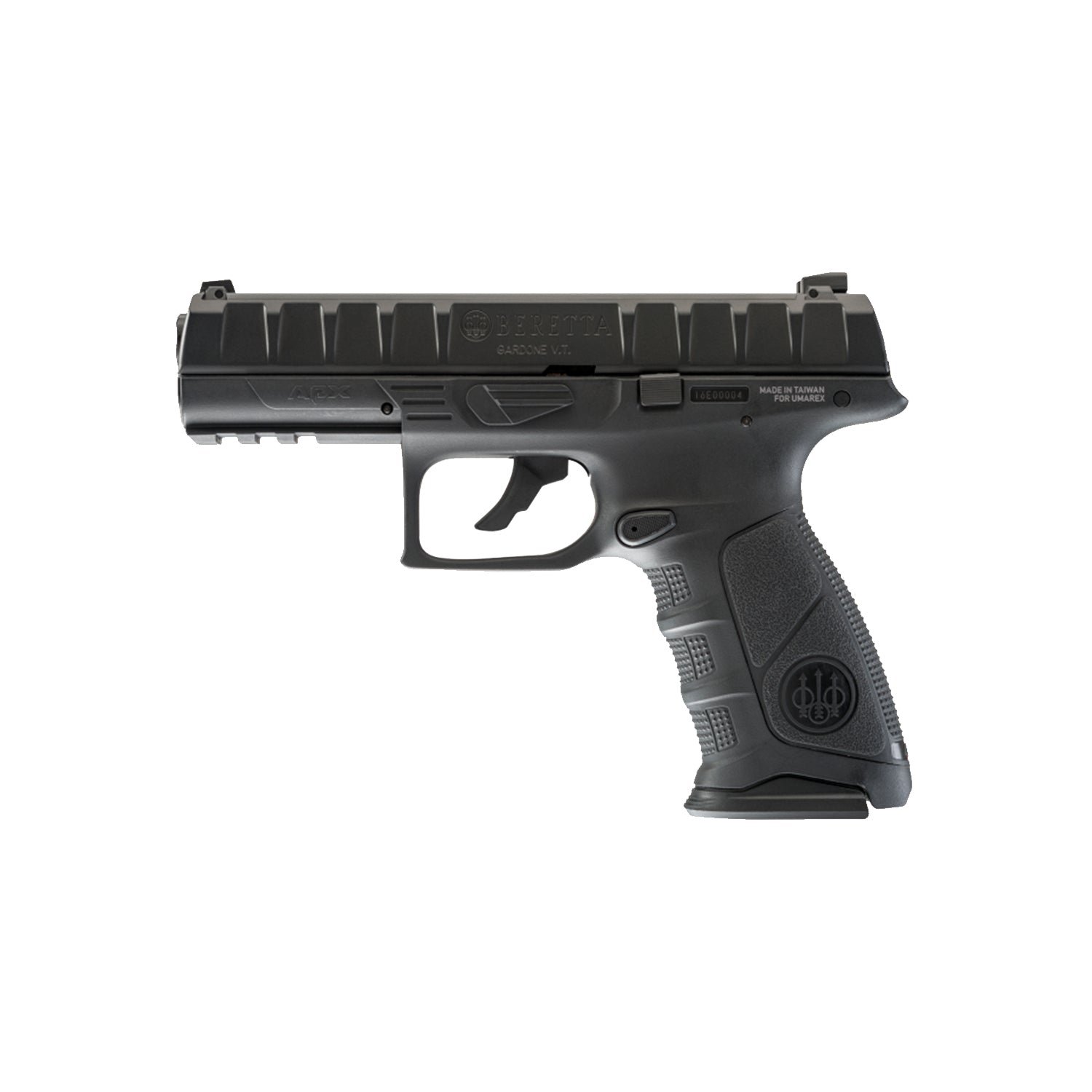 La pistola BB de retroceso semiautomática Beretta APX es otra réplica ultrarrealista de Umarex USA. Diseñado originalmente como un reemplazo para el Beretta M9, el problema estándar de las Fuerzas Armadas de EE. UU., pero considerado demasiado costoso para el Departamento de Defensa, Beretta retiró el APX y optó por modificar el M9. Como resultado, el mundo civil se benefició al poder comprar una pistola de especificaciones militares que era «demasiado especificaciones militares» para los militares. El APX de Umarex está construido con un marco de polímero y una corredera de metal. Los accesorios se pueden montar fácilmente en el riel Picatinny frontal.
