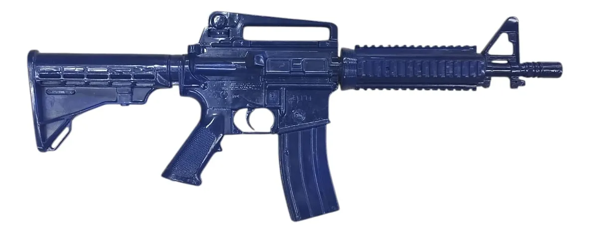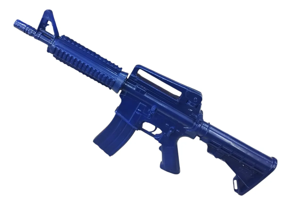 Rifle de entrenamiento tipo AR-15, fabricado en polímero resistente. Réplica sólida no funcional, ideal para prácticas, simulaciones tácticas, instrucción, exhibición o uso escénico. Acabado en color azul marino.